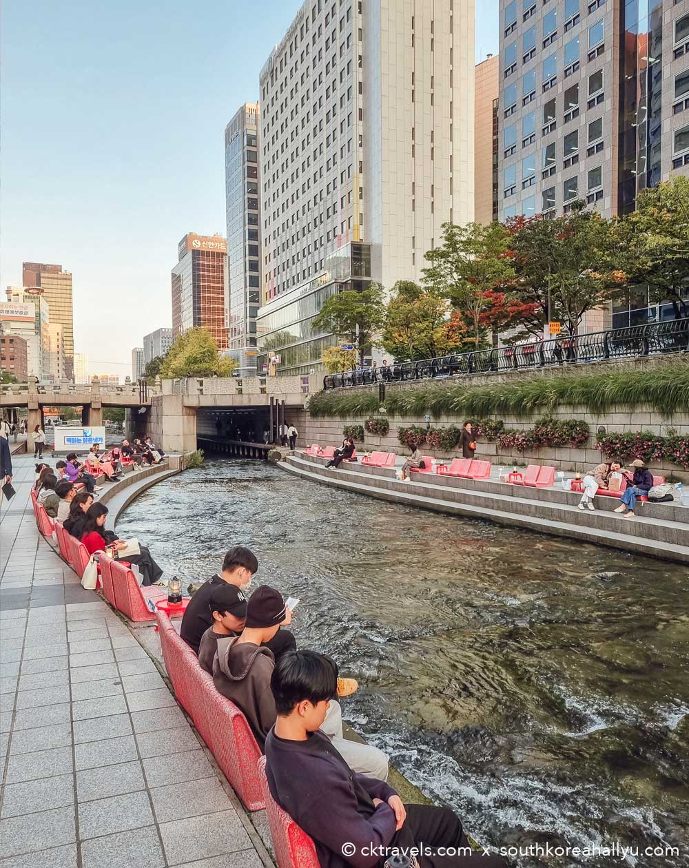 Just a short 5 minute walk away from Seoul Plaza brings you to the Cheonggyecheon Stream, which is just a magical location.