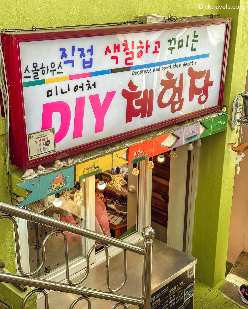 Located along Miro Miro Alley towards the top of the steps, there is a small Gamcheon Cultural Village gallery and activity cafe where you can make or paint your very own village.