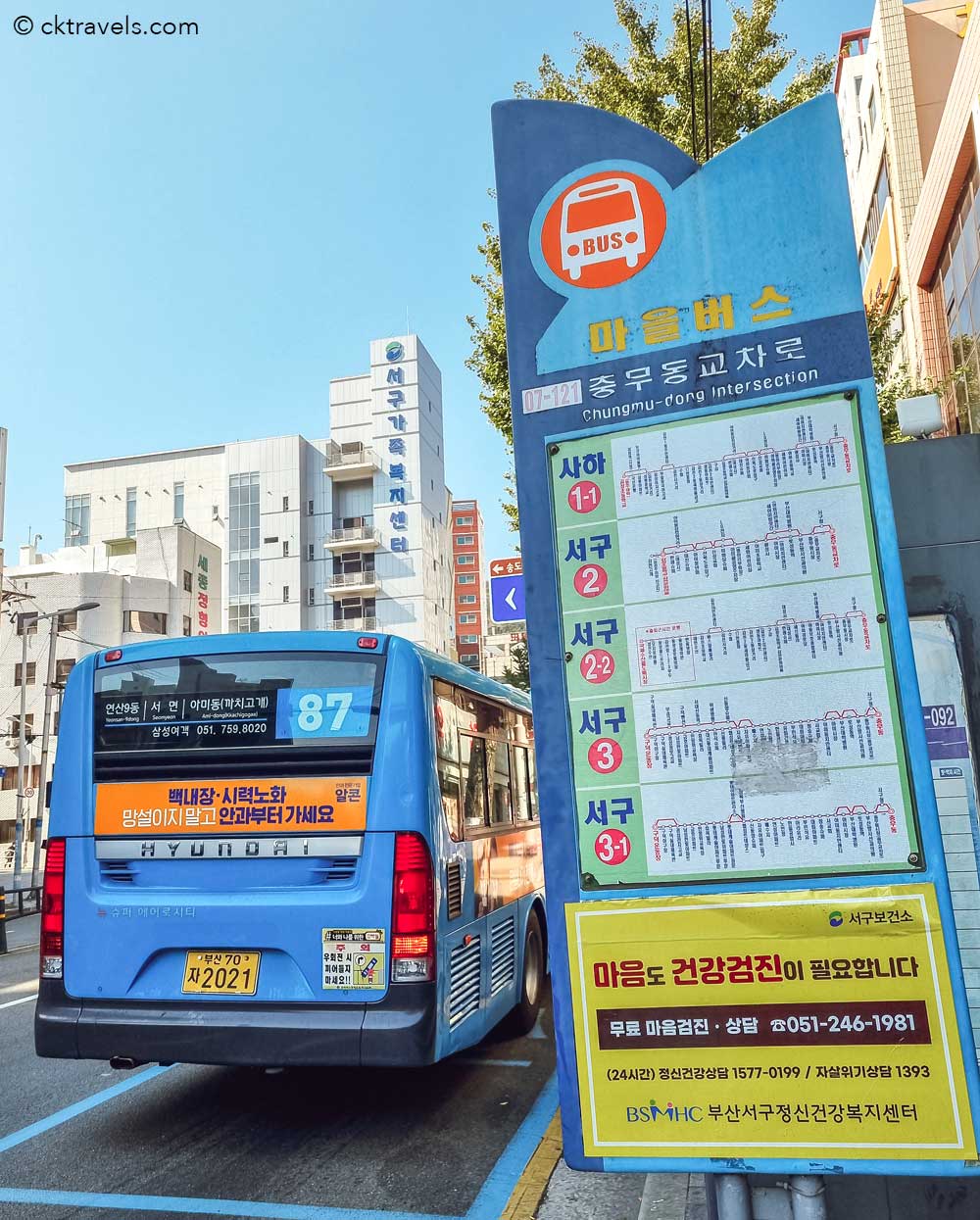 The easiest way to pay for the Gamcheon Cultural Village bus (and all other Busan public transport) is to buy and top up a T-Money card, available at stations or convenience stores like 7-Eleven.