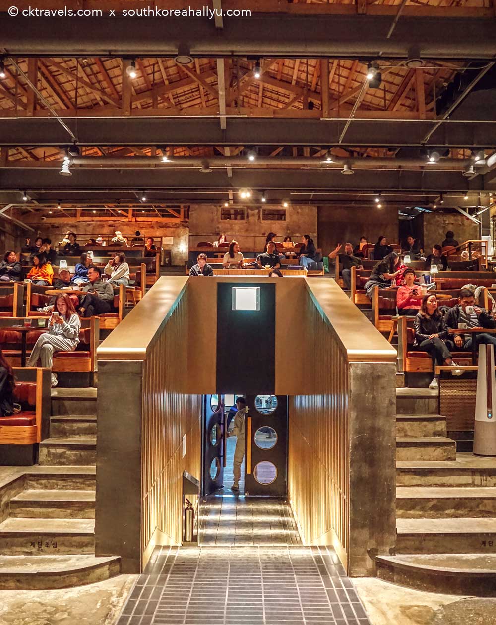 The building is beautiful and we’ve never seen such a big Starbucks in South Korea – in fact, anywhere in the world. The tiered effect of all the seating areas gives you a sense that you are still in a movie theater about to watch a late night film.